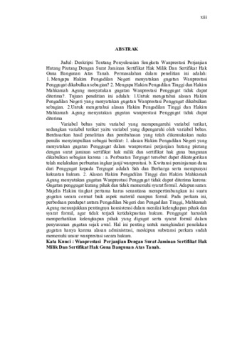 | Uncontrolled Keywords: | Wanprestasi Perjanjian Dengan Surat Jaminan Sertifikat Hak Milik Dan Sertifikat Hak Guna Bangunan Atas Tanah. |