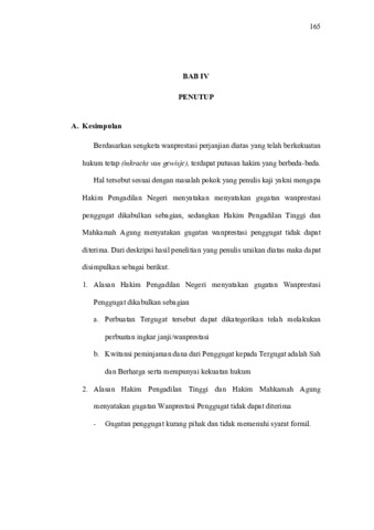 Permasalahan dalam penelitian ini adalah: 1. Mengapa Hakim Pengadilan Negeri menyatakan gugatan Wanprestasi Penggugat dikabulkan sebagian? 2. Mengapa Hakim Pengadilan Tinggi dan Hakim Mahkamah Agung menyatakan gugatan Wanprestasi Penggugat tidak dapat diterima?. Tujuan penelitian ini adalah: 1.Untuk mengatahui alasan Hakim Pengadilan Negeri yang menyatakan gugatan Wanprestasi Penggugat dikabulkan sebagian. 2.Untuk mengetahui alasan Hakim Pengadilan Tinggi dan Hakim Mahkamah Agung menyatakan gugatan wanprestasi Penggugat tidak dapat diterima Variabel bebas yaitu variabel yang mempengaruhi variabel terikat, sedangkan variabel terikat yaitu variabel yang dipengaruhi oleh variabel bebas. Berdasarkan hasil penelitian dan pembahasan yang telah dikemukakan maka penulis menyimpulkan sebagai berikut: 1. alasan Hakim Pengadilan Negeri yang menyatakan gugatan Penggugat dalam wanprestasi perjanjian hutang piutang dengan surat jaminan sertifikat hak milik dan sertifikat hak guna bangunan dikabulkan sebagian karena: a. Perbuatan Tergugat tersebut dapat dikategorikan telah melakukan perbuatan ingkar janji/wanprestasi. b. Kwitansi peminjaman dana dari Penggugat kepada Tergugat adalah Sah dan Berharga serta mempunyai kekuatan hukum. 2. Alasan Hakim Pengadilan Tinggi dan Hakim Mahkamah Agung menyatakan gugatan Wanprestasi Penggugat tidak dapat diterima karena: Gugatan penggugat kurang pihak dan tidak memenuhi syarat formil. Adapun saran: Majelis Hakim tingkat pertama harus senantiasa mempertimbangkan isi suatu gugatan secara cermat baik aspek materiil maupun formil. Pada perkara ini, perbedaan pendapat antara Pengadilan Negeri dan Pengadilan Tinggi, Mahkamah Agung menunjukkan pentingnya konsistensi dalam menilai kelengkapan pihak dan syarat formil, agar tidak terjadi ketidakpastian hukum. Penggugat haruslah memperhatikan kelengkapan pihak yang digugat serta syarat formil dalam penyusunan gugatan sejak awal. Hal ini penting untuk menghindari penolakan gugatan hanya karena alasan administrasi, meskipun substansi perkara sudah memenuhi unsur wanprestasi secara hukum.