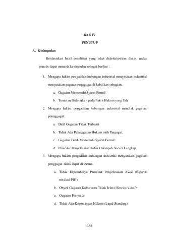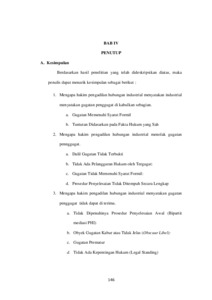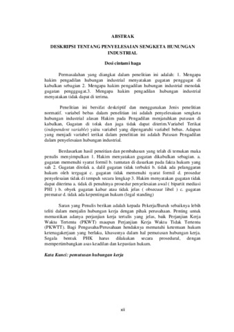Permasalahan yang diangkat dalam penelitian ini adalah: 1. Mengapa hakim pengadilan hubungan industrial menyatakan gugatan penggugat di kabulkan sebagian 2. Mengapa hakim pengadilan hubungan industrial menolak gugatan pengggugat.3. Mengapa hakim pengadilan hubungan industrial menyatakan tidak dapat di terima. Penelitian ini bersifat deskriptif dan menggunakan Jenis penelitian normatif. variabel bebas dalam penelitian ini adalah penyelesaiaan sengketa hubungan industrial alasan Hakim pada Pengadilan menjatuhkan putusan di kabulkan, Gugatan di tolak dan juga tidak dapat diterim. Variabel Terikat (independent variable) yaitu variabel yang dipengaruhi variabel bebas. Adapun yang menjadi variabel terikat dalam penelitian ini adalah Putusan Pengadilan dalam penyelesaian hubungan industrial. Berdasarkan hasil peneitian dan pembahasan yang telah di temukan maka penulis menyimpulkan 1. Hakim menyatakan gugatan dikabulkan sebagian. a. gugatan memenuhi syarat formil b. tuntutan di dasarkan pada fakta hukum yang sah 2. Gugatan ditolak a. dalil gugatan tidak terbukti b. tidak ada pelanggaran hukum oleh tergugat c. gugatan tidak memenuhi syarat formil d. prosedur penyelesaian tidak di tempuh secara lengkap 3. Hakim menyatakan gugatan tidak dapat diterima a. tidak di penuhinya prosedur penyelesaian awal (bipartit mediasi PHI) b. obyek gugatan kabur atau tidak jelas (obsecuur libel) c. gugatan prematur d. tidak ada kepentingan hukum (legal standing) Saran yang Penulis berikan adalah kepada Pekerja/Buruh sebaiknya lebih teliti dalam menjalin hubungan kerja dengan pihak perusahaan. Penting untuk memastikan adanya perjanjian kerja tertulis yang jelas, baik Perjanjian Kerja Waktu Tertentu (PKWT) maupun Perjanjian Kerja Waktu Tidak Tertentu (PKWTT). Bagi Pengusaha/Perusahaan hendaknya mematuhi ketentuan hukum ketenagakerjaan yang berlaku, khususnya dalam hal pemutusan hubungan kerja. Segala bentuk PHK harus dilakukan secara prosedural, dengan mempertimbangkan asas keadilan dan kepastian hukum.