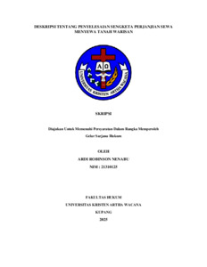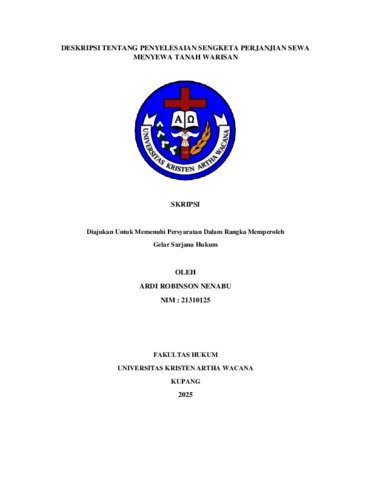 NENABU, Ardi R. (2025) DESKRIPSI TENTANG PENYELESAIAN SENGKETA PERJANJIAN SEWA MENYEWA TANAH WARISAN. Undergraduate thesis, Artha Wacana Christian University.