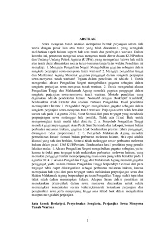 DESKRIPSI TENTANG PENYELESAIAN SENGKETA PERJANJIAN SEWA MENYEWA TANAH WARISAN
