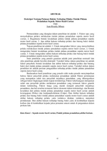 Permasalahan yang diangkat dalam penelitian ini adalah: 1. Faktor apa yang menyebabkan pelaku melakukan tindak pidana penadahan sepeda motor hasil curian, 2. Bagaimana bentuk kesalahaan pelaku tindak pidana penadahan sepeda motor hasil curian, 3. Apa akibat hukum terhadap pelaku dan barang bukti tindak pidana penadahan sepeda motor hasil curian. Tujuan penelitian ini adalah: 1. Untuk mengetahui faktor yang menyebabkan pelaku melakukan tindak pidana penadahan sepeda motor hasil curian, 2. Untuk mengetahui bentuk kesalahaan pelaku tindak pidana penadahan sepeda motor hasil curian, 3. Untuk mengetahui akibat hukum terhadap pelaku dan barang bukti tindak pidana penadahan sepeda motor hasil curian. Jenis penelitian yang penulis gunakan adalah jenis penelitian normatif dan sifat penelitian adalah bersifat diskriptif. Variabel bebas dalam penelitian ini adalah faktor penyebab, bentuk kesalahan dan akibat hukum terhadap pelaku dan baramg bukti dari tindak pidana penadah sepeda motor hasil curian. Variabel terikat dalam penelitian ini adalah putusan pengaadilan terhadap pelaku tindak pidana penadahan sepeda motor hasil curian. Berdasarkan hasil penelitian yang penulis teliti maka penulis menyimpulkan bahwa faktor penyebab pelaku melakukan penadahan adalah Faktor pertemanan yang merupakan salah satu penyebab terjadinya penadahan, yang dikategorikan sebagai faktor lingkungan dalam kajian kriminologi, Faktor kekeluargaan merupakan salah satu penyebab pelaku melakukan penadahan yang termasuk faktor genetik dalam kriminolog, Faktor harga yang murah menjadi penyebab terjadinya penadahan, dan hal tersebut termasuk faktor ekonomi dalam kriminologi dan Bentuk kesalahan dari pelaku tindak pidana penadahan sepeda motor hasil curian adalah kesengajaan (Dolus) dan kealpaan/kelalaian (Culpa). Dan Akibat hukum terhadap pelaku dan barang bukti tindak pidana penadahan sepeda motor hasil curian adalah akibat hukum terhadap pelaku yaitu terdakwa ditahan, terdakwa menjalani pemidanaan. Dan akibat hukum terhadap barang bukti yaitu di kembalikan kepada korban dan di kembalikan kepada jaksa penuntut umum untuk di pergunakan dalam perkara lain.