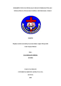MBURA, Juan R. (2025) DESKRIPSI TENTANG PENEGAKAN HUKUM TERHADAP PELAKU TINDAK PIDANA PENADAHAN SEPEDA MOTOR HASIL CURIAN. Undergraduate thesis, Artha Wacana Christian University.