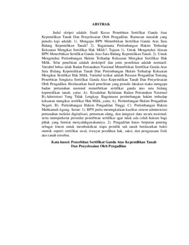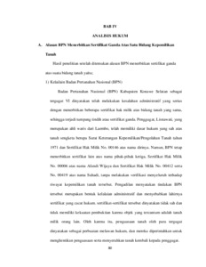 Uncontrolled Keywords: Penerbitan Sertifikat Ganda Atas Kepemilikan Tanah Dan Penyelesaian Oleh Pengadilan