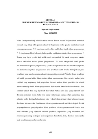 | Uncontrolled Keywords: | Modus, Motif dan Akibat Hukum Tindak Pidana Pengancaman |