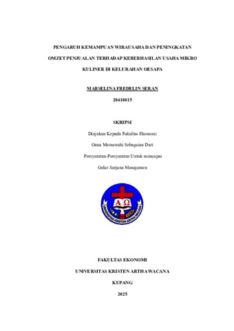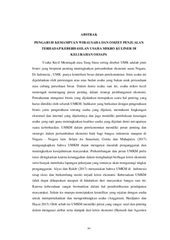 PENGARUH KEMAMPUAN WIRAUSAHA DAN PENINGKATAN OMZET PENJUALAN TERHADAP KEBERHASILAN USAHA MIKRO KULINER DI KELURAHAN OESAPA