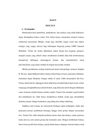 MASU, Jessyca Velovecya (2025) TEBE: Suatu Tinjauan Teologi Kontekstual Terhadap Tarian Tebe Dan Maknanya Bagi Persekutuan Jemaat GMIT Imanuel Maktihan, Klasis Malaka. Undergraduate thesis, Artha Wacana Christian University.