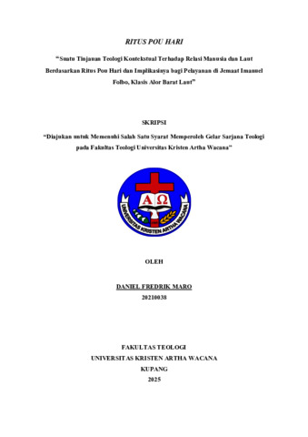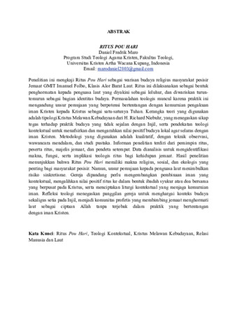 MARO, Daniel Fredrik (2025) RITUS POU HARI: Suatu Tinjauan Teologi Kontekstual Terhadap Relasi Manusia dan Laut Berdasarkan Ritus Pou Hari dan Implikasinya bagi Pelayanan di Jemaat Imanuel Folbo, Klasis Alor Barat Laut. Undergraduate thesis, Artha Wacana Christian University.