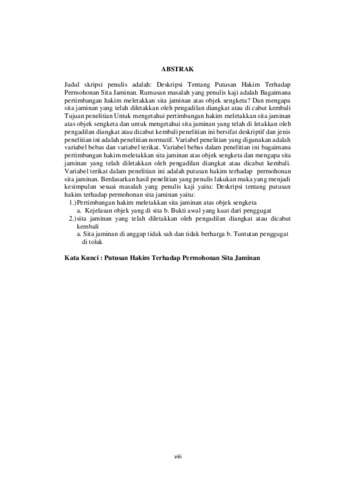 Uncontrolled Keywords: Putusan Hakim Terhadap Permohonan Sita Jaminan
