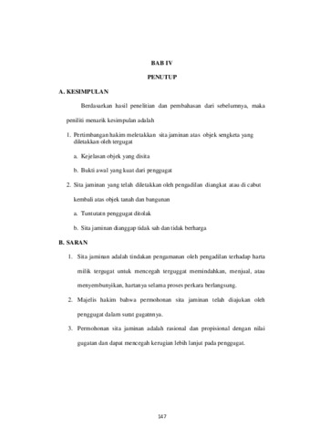 Rumusan masalah yang penulis kaji adalah Bagaimana pertimbangan hakim meletakkan sita jaminan atas objek sengketa? Dan mengapa sita jaminan yang telah diletakkan oleh pengadilan diangkat atau di cabut kembali Tujuan penelitian Untuk mengetahui pertimbangan hakim meletakkan sita jaminan atas objek sengketa dan untuk mengetahui sita jaminan yang telah di letakkan oleh pengadilan diangkat atau dicabut kembali penelitian ini bersifat deskriptif dan jenis penelitian ini adalah penelitian normatif. Variabel penelitian yang digunakan adalah variabel bebas dan variabel terikat. Variabel bebas dalam penelitian ini bagaimana pertimbangan hakim meletakkan sita jaminan atas objek sengketa dan mengapa sita jaminan yang telah diletakkan oleh pengadilan diangkat atau dicabut kembali. Variabel terikat dalam penelitian ini adalah putusan hakim terhadap permohonan sita jaminan. Berdasarkan hasil penelitian yang penulis lakukan maka yang menjadi kesimpulan sesuai masalah yang penulis kaji yaitu: Deskripsi tentang putusan hakim terhadap permohonan sita jaminan yaitu: 1.) Pertimbangan hakim meletakkan sita jaminan atas objek sengketa a. Kejelasan objek yang di sita b. Bukti awal yang kuat dari penggugat 2.) sita jaminan yang telah diletakkan oleh pengadilan diangkat atau dicabut kembali a. Sita jaminan di anggap tidak sah dan tidak berharga b. Tuntutan penggugat di tolak