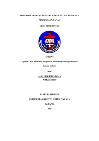 DIMA, Aldi Feblindo (2025) DESKRIPSI TENTANG PUTUSAN HAKIM DALAM SENGKETA PENGUASAAN TANAH. Undergraduate thesis, Artha Wacana Christian University.