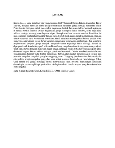 | Uncontrolled Keywords: | Penatalayanan, Krisis Ekologi, GMIT Imanuel Oenay. |