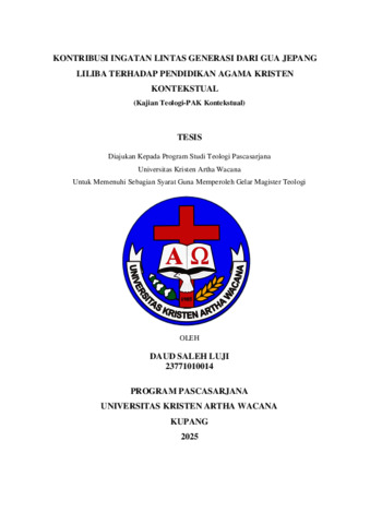 LUJI, Daud Saleh (2025) KONTRIBUSI INGATAN LINTAS GENERASI DARI GUA JEPANG LILIBA TERHADAP PENDIDIKAN AGAMA KRISTEN KONTEKSTUAL: Kajian Teologi-PAK Kontekstual. Masters thesis, Artha Wacana Christian University.