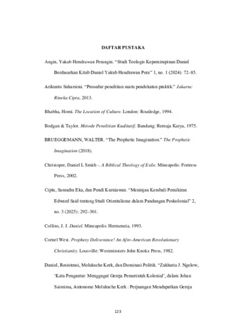 MAYOPU, Febrizen Alvaro (2025) PEMUDA & KONFLIK IDENTITAS: Analisis Poskolonial Daniel 1 & Relevansinya bagi Pemuda GMIT Yegar Sahaduta Bello. Masters thesis, Artha Wacana Christian University.