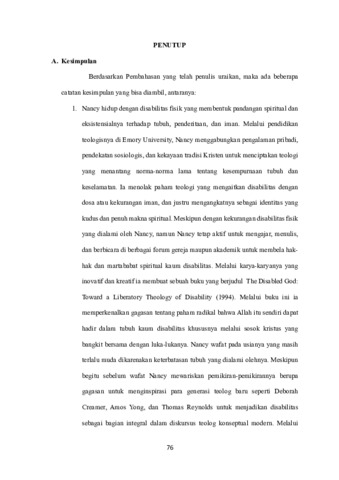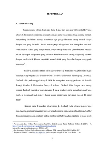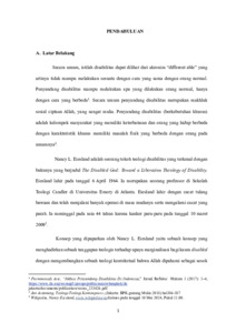 GEREJA DAN PENYANDANG DISABILITAS: Suatu Tinjauan Teologis Terhadap Pemikiran Nancy Eiesland Tentang Teologi Pembebasan Sebagai Upaya Pemberdayaan Bagi Penyandang Disabilitas di Jemaat Lelakapa Meoain, Klasis Rote Barat Daya.