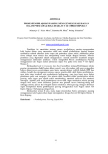 Penelitian ini membahas tentang proses pembelajaran passing menggunakan kaki bagian dalam yang merupakan salah satu model pembelajaran passing dengan melibatkan seluruh aktivitas siswa tanpa ada perbedaan status sosial, melibatkan peran siswa sebagai tutor sebaya dan mengandung unsur belajar dengan bermain. Metode penelitian yang digunakan adalah menggunakan metode deskriftif kuantitatif dengan menggunakan instrument penilaian. Untuk mengetahui Proses pembelajaran Passing menggunakan kaki bagian dalam permainan sepak bola pada siswa kelas V SD Inpres Oepura 3. Berdasarkan hasil wawancara dan hasil penelitian tentang Pembelajaran teknik passing menggunakan kaki bagian dalam seperti yang dikemukan oleh guru penjasorkes bahwa dalam proses pembelajaran guru harus mempersipkam terlebih dahulu RPP dan silabus, benahi dan mempunyai rencana supaya peserta didik aktif dalam pembelajaran, agar kelas tetap kondusif saat pembelajaran berlangsung, guru juga harus tegas dalam pembinaan pada saat mengajar. Jika peserta didik kesulitan dalam pembelajaran teknik passing, maka tugas guru adalah untuk membimbing, memberi motivasi dan memberi dorongan. Apabila pada awal pembelajaran siswa tidak dapat melakukan teknik passing dengan baik maka harus dilakukan gerakan atau praktek secara berulang-ulang kali sehingga mereka paham dan mengerti dalam melakukan teknik passing. Dengan demikian dapat disimpulkan bahwa pembelajaran passing menggunakan kaki bagian dalam SD Inpres Oepura 3 berlangsung dengan baik. Berdasarkan uraian di atas, maka dapat disimpulkan bahwa penerapan paasing menggunakan kaki bagian dalam dapat meningkatkan dengan baik di SD Inpres Oepura 3 Kota Kupang.
