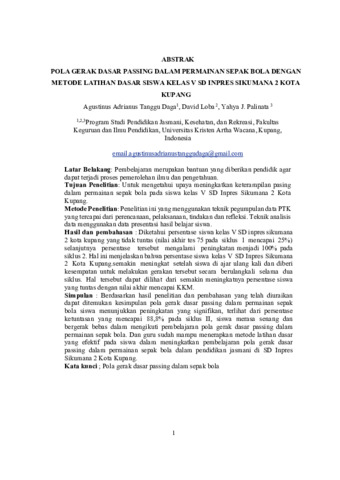 DAGA, Agustinus Adrianus Tanggu (2025) POLA GERAK DASAR PASSING DALAM PERMAINAN SEPAK BOLA DENGAN METODE LATIHAN DASAR SISWA KELAS V SD INPRES SIKUMANA 2 KOTA KUPANG. Undergraduate thesis, Artha Wacana Christian University.