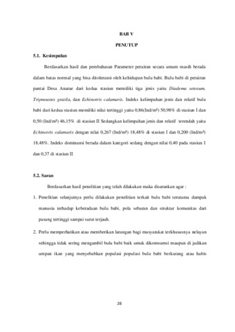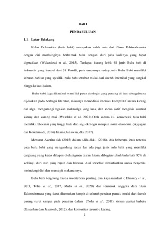 STRUKTUR KOMUNITAS BULU BABI (Echinoidea) DI ZONA INTERTIDAL PERAIRAN PANTAI, DESA ANARAE, KECAMATAN NDAO NUSE, KABUPATEN ROTE NDAO