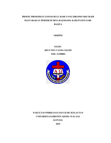 DJAMI, Rico Teo Vanda (2025) PROFIL PROKSIMAT GONAD BULU BABI YANG DIKONSUMSI OLEH MASYARAKAT PESISIR DI DESA RAEMADIA KABUPATEN SABU RAIJUA. Undergraduate thesis, Artha Wacana Christian University.