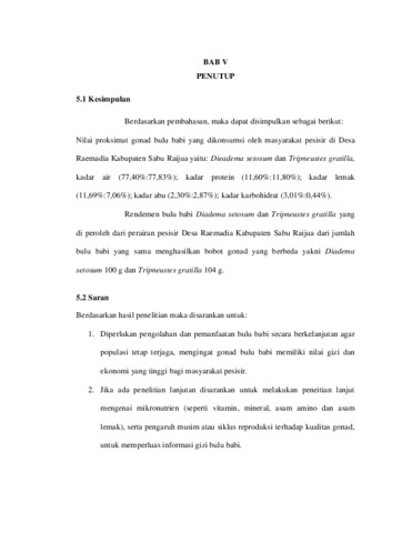 | Uncontrolled Keywords: | Bulu Babi, Gonad, Diadema Setosum, Tripneustes Gratila |