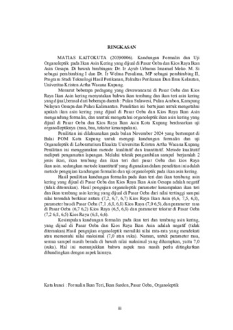 KAITOKUTA, Matias (2025) KANDUNGAN FORMALIN DAN UJI ORGANOLEPTIK PADA IKAN ASIN KERING YANG DIJUAL DI PASAR OEBA DAN KIOS RAYA IKAN ASIN OESAPA. Undergraduate thesis, Artha Wacana Christian University.