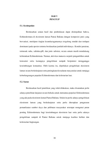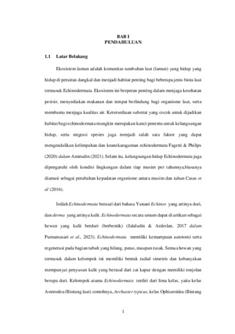 STRUKTUR KOMUNITAS ECHINODERMATA DI EKOSISTEM LAMUN PANTAI BALIANA DESA KUANHEUM KECAMATAN KUPANG BARAT KABUPATEN KUPANG