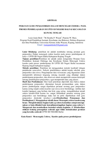 PERANAN GURU PENJASORKES DALAM MENCEGAH CEDERA PADA PROSES PEMBELAJARAN DI UPTD SD NEGERI BALFAI KECAMATAN KUPANG TENGAH