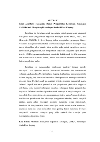 MALI, Maria Yunita Aluk (2025) PERAN AKUNTANSI MANAJERIAL DALAM PENGAMBILAN KEPUTUSAN KEUANGAN UMKM UNTUK MENGHADAPI PERSAINGAN DI KOTA KUPANG. Undergraduate thesis, Artha Wacana Christian University.