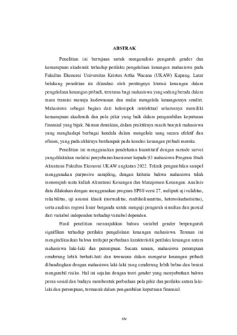 | Uncontrolled Keywords: | Gender, kemampuan akademik, perilaku pengelolaan keuangan mahasiswa. |