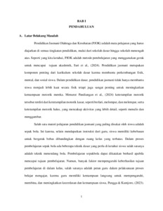 Latar Belakang: Latar belakanpenelitian ini didasarkan pada rendahnya hasil belajar siswa dalam teknik dasar menendang bola, yang dipengaruhi oleh pembelajaran yang masih bersifat teacher-centered, kurangnya partisipasi aktif siswa, serta minimnya penggunaan model pembelajaran inovatif. Tujuan Penelitian: Penelitian ini bertujuan untuk meningkatkan hasil belajar siswa pada pembelajaran teknik passing sepak bola melalui penerapan model Problem Based Learning (PBL) di kelas VB SD Inpres Oesapa, Kota Kupang. Metode Penelitian: Penelitian ini merupakan Penelitian Tindakan Kelas (PTK) yang dilaksanakan dalam dua siklus. Setiap siklus terdiri atas empat tahapan, yaitu perencanaan, pelaksanaan tindakan, observasi, dan refleksi. Pendekatan yang digunakan adalah pendekatan kuantitatif dengan tujuan mendeskripsikan peningkatan hasil belajar siswa secara statistik. Populasi dalam penelitian ini adalah seluruh siswa kelas V SD Inpres Oesapa yang berjumlah 108 orang. Sampel yang digunakan adalah siswa kelas VB yang berjumlah 27 siswa, terdiri dari 18 laki-laki dan 9 perempuan. Teknik sampling yang digunakan adalah non-probability sampling dengan model quota sampling. Instrumen yang digunakan dalam penelitian ini adalah lembar observasi aktivitas guru dan siswa, serta tes praktik teknik passing (menggunakan kaki bagian dalam, luar, dan punggung kaki). Data dianalisis menggunakan teknik deskriptif kuantitatif berdasarkan hasil observasi dan tes. Hasil penelitian : Hasil penelitian menunjukkan adanya peningkatan yang signifikan pada siklus II dibandingkan dengan siklus I. Pada siklus I, persentase ketuntasan belajar siswa hanya mencapai 44,44% dengan rata-rata nilai 61. Setelah dilakukan perbaikan pada siklus II, ketuntasan meningkat menjadi 96% dengan rata-rata nilai 85. Selain itu, aktivitas guru meningkat dari 61% menjadi 90% dan aktivitas siswa dari 58% menjadi 85%. Simpulan: Dapat disimpulkan bahwa penerapan model Problem Based Learning efektif dalam meningkatkan hasil belajar teknik passing sepak bola pada siswa kelas VB SD Inpres Oesapa. Model ini mendorong siswa untuk lebih aktif, berpikir kritis, dan terlibat langsung dalam proses pembelajaran.