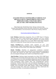 SAIT, Maria Fatima (2025) ANALISIS TINGKAT KETERAMPILAN SERVIS ATAS MENGGUNAKAN VARIASI SERVIS JUMP FLOAT PERMAINAN BOLA VOLI PADA SISWA KELAS VIII G SMP NEGERI 20 KUPANG. Undergraduate thesis, Artha Wacana Christian University.