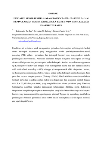 BEO, Raimundus Do (2025) PENGARUH MODEL PEMBELAJARANPROBLEM BASED LEARNING DALAM MENINGKATKAN TEKNIK DRIBBLE BOLA BASKET PADA SISWA KELAS XI SMA KRISTEN TARUS. Undergraduate thesis, Artha Wacana Christian University.