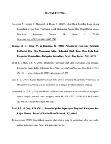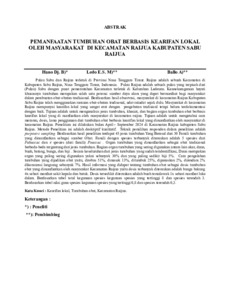 HANO, Bertolomeus Djane (2025) PEMANFAATAN TUMBUHAN OBAT BERBASIS KEARIFAN LOKAL OLEH MASYARAKAT DI KECAMATAN RAIJUA KABUPATEN SABU RAIJUA. Undergraduate thesis, Artha Wacana Christian University.