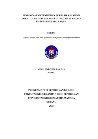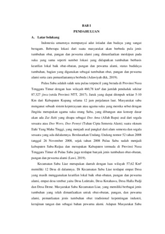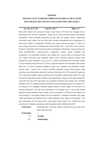 DAY, Mersi Dwi Putri Lay (2025) PEMANFAATAN TUMBUHAN BERBASIS KEARIFAN LOKAL OLEH MASYARAKAT KECAMATAN LIAE KABUPATEN SABU RAIJUA. Undergraduate thesis, Artha Wacana Christian University.