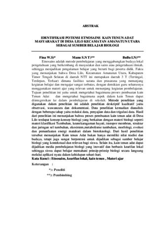 Etnosains adalah metode pembelajaran yang menggabungkan budaya lokal pengetahuan yang berkembang di masyarakat dan sains atau pengetahuan ilmiah, sehingga menjadikan pengalaman belajar yang berarti bagi peserta didik. Fakta yang menunjukan bahwa Desa Lilo, Kecamatan Amanatun Utara, Kabupaten Timor Tengah Selatan di daerah NTT ini merupakan daerah 3 T (Tertingal, Terdepan, Terluar) dimana fasilitas sarana dan prasarana yang menunjang kegiatan belajar dan mengajar sangat terbatas, dengan demikian guru seharusnya menggunakan materi ajar yang relevan untuk menunjang kegiatan pembelajaran. Tujuan penelitian ini yaitu untuk mengetahui bagaimana proses pembuatan kain Tenun Adat dan mengetahui bagaimana aspek dalam kain Tenun dapat diintegresikan ke dalam pembelajaran di sekolah. Metode penelitian yang digunakan dalam penelitian ini adalah penelitian deskriptif kualitatif yaitu observasi, wawancara dan dokumentasi. Data penelitian kemudian dianalisis dengan beberapa tahap yaitu reduksi data, penyajian data dan trigulasi data. Hasil dari penelitian ini menunjukan bahwa proses pembuatan kain tenun adat di Desa Lilo terdapat konsep-konsep biologi yang berkaitan dengan materi biologi seperti materi klasifikasi Tumbuhan, keanekaragaman hayati, transpor membran, struktur dan jaringan sel tumbuhan, ekosistem,metabolisme tumbuhan, morfologi, evolusi dan pemanfaatan energi matahari dalam bioteknologi. Dari hasil penelitian tersebut menunjukan Kain tenun Adat bukan hanya memiliki nilai tradisi dan budaya, tetapi juga sangat berpotensi untuk dijadikan sebagai sumber belajar biologi yang kontekstual dan relevan bagi siswa. Selain itu, kain tenun adat dapat dijadikan media pembelajaran biologi yang inovatif dan berbasis kearifan lokal sehingga siswa dapat belajar memahani prinsip-prinsip biologi secara langsung melalui aplikasi nyata dalam kehidupan sehari-hari.