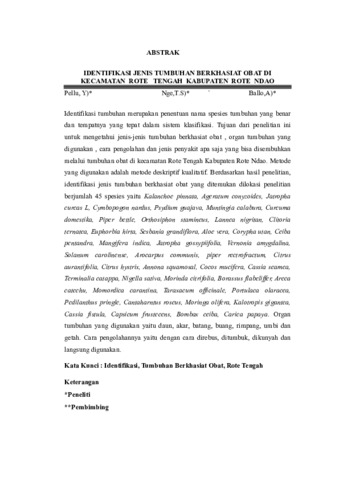 IDENTIFIKASI JENIS TUMBUHAN BERKHASIAT OBAT DI KECAMATAN ROTE TENGAH KABUPATEN ROTE NDAO