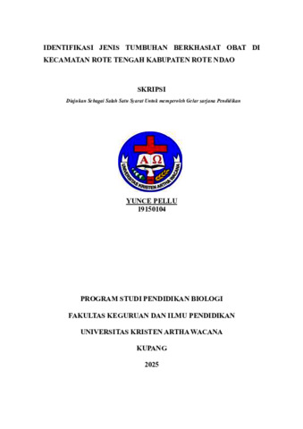 PELLU, Yunce (2025) IDENTIFIKASI JENIS TUMBUHAN BERKHASIAT OBAT DI KECAMATAN ROTE TENGAH KABUPATEN ROTE NDAO. Undergraduate thesis, Artha Wacana Christian University.
