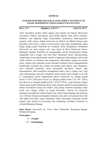 PAE, Yofa Anisa (2025) ANALISIS BAKTERI Salmonella sp. PADA SOSIS YANG DIJUAL DI PASAR TRADISIONAL OESAO KABUPATEN KUPANG. Undergraduate thesis, Artha Wacana Christian University.
