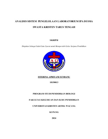 SUNBANU, Isterina Apriyani (2025) ANALISIS SISTEM PENGELOLAAN LABORATORIUM IPA DI SMAS KRISTEN TARUS TENGAH. Undergraduate thesis, Artha Wacana Christian University.