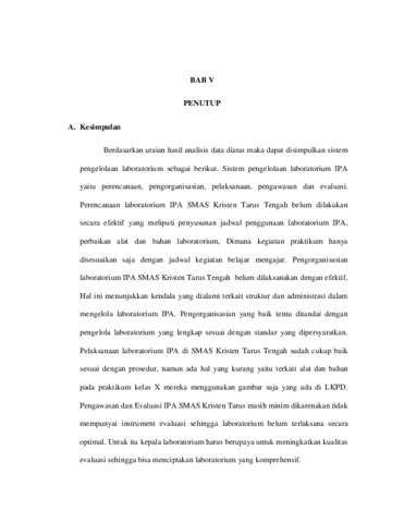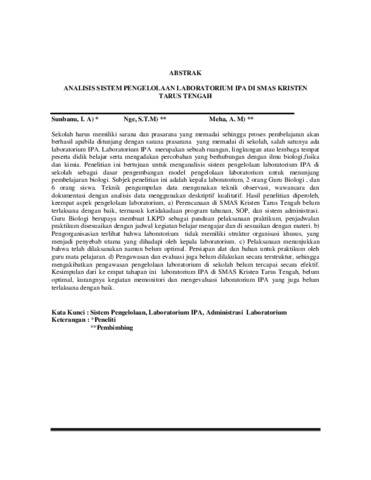 ANALISIS SISTEM PENGELOLAAN LABORATORIUM IPA DI SMAS KRISTEN TARUS TENGAH