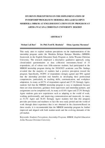 This study aims to explore student's perceptions on the implementation of the internship program under the Merdeka Belajar Kampus Merdeka (MBKM) framework in the English Education Study Program at Artha Wacana Christian University. The research employed a descriptive qualitative approach, using closed-ended questionnaires as data collection instruments.Atotal of 33 respondents, all of whom were fifth-semester students, had participated in the MBKM internship program during the 2024/2025 academic year.The findings revealed that the majority of students had a positive perception toward the program. Specifically, 39.09% of respondents strongly agreed and 50% agreed that the internship provided real benefits in developing their professional competencies, particularly in teaching skills, communication, and workplace adaptation. As many as 69.7% of respondents agreed and 27.3% Strongly Agree, students feel that the MBKM internship program is easy to implement because there are clear directions, guidance from supervisors and internship partners, and assignments can be completed well, As many as 63.6% Agree and 27.3% Strongly Agree students gain new experiences such as adapting to the world of work, working professionally, and improving communication and teamwork, As many as 51.5% Agree and 36.4% Strongly Agree students feel that this program provides provisions and readiness to face the next study period and the world of work through direct experience that is not obtained in the classroom.Based on these results, it is recommended that the MBKM internship program be further improved and aligned with both student needs and the evolving demands of the job market.