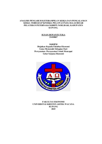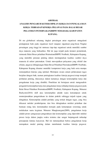 TUKA, Susan Dewanti (2025) ANALISIS PENGARUH KETERAMPILAN KERJA DAN PENGALAMAN KERJA TERHADAP KINERJA PEGAWAI PADA BALAI BESAR PELATIHAN PETERNAKAN(BBPP) NOELBAKI, KABUPATEN KUPANG. Undergraduate thesis, Artha Wacana Christian University.