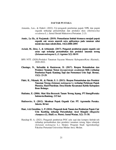 PENGARUH PENGUNAAN POC URIN SAPI SEBAGAI PUPUK ORGANIK CAIR TERHADAP PERTUMBUHAN DAN PRODUKSI TANAMAN TERUNG (Solanum melongena L.) DI OESAPA