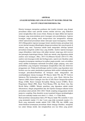 Kinerja keuangan merupakan gambaran dari kondisi ekonomi yang dicapai perusahaan dalam suatu periode tertentu melalui aktivitas yang dilakukan untuk menghasilkan laba secara efisien. Kinerja ini dapat dilihat dari laporan keuangan yang mencerminkan posisi keuangan serta perubahannya. Laporan keuangan sangat penting untuk mengevaluasi dan menganalisis seberapa efektif operasional perusahaan dalam mencapai tujuan keuangannya. (Fahmi, 2013).Menganalisis laporan keuangan berarti menilai kinerja perusahaan baik secara internal maupun dibandingkan dengan perusahaan lain yang bergerak di industri yang sama. Tujuannya adalah untuk mengetahui seberapa optimal perusahaan mengelola sumber daya yang dimiliki. Analisis laporan keuangan sangat dibutuhkan, tidak hanya oleh pihak internal, tetapi juga oleh investor dan pemangku kepentingan lainnya. Salah satu metode yang digunakan adalah analisis rasio keuangan. (Hery, 2015:132).Menurut Kasmir (2014:172–196), analisis rasio keuangan terdiri dari berbagai jenis, seperti rasio likuiditas untuk mengukur kemampuan membayar kewajiban jangka pendek, rasio solvabilitas untuk melihat kemampuan memenuhi kewajiban jangka panjang, serta rasio profitabilitas yang mengukur kemampuan menghasilkan laba dan efektivitas penggunaan aset. Dalam perkembangan analisis modern, juga digunakan rasio berbasis arus kas untuk memberikan gambaran lebih realistis terhadap kondisi keuangan perusahaan.Penelitian ini bertujuan untuk menganalisis dan membandingkan kinerja keuangan PT Mayora Indah Tbk dan PT Unilever Indonesia Tbk berdasarkan tujuh rasio arus kas, yaitu: Rasio Aktivitas Kas Operasi (AKO), Rasio Cadangan Arus Kas (CAD), Rasio Cakupan Kewajiban Bunga (CKB), Rasio Cakupan Kewajiban Hutang Lancar (CKHL), Rasio Pengeluaran Modal (PM), Rasio Total Hutang (TH), dan Rasio Arus Kas Bersih Bebas (AKBB). Metode penelitian yang digunakan adalah teknik dokumentasi, dengan pengambilan data dari laporan keuangan tahunan kedua perusahaan untuk periode 2022–2024. Teknik sampling menggunakan metode purposive sampling. Data dianalisis secara kuantitatif dengan membandingkan hasil rasio terhadap standar rasio ideal (>1 = Baik, <1 = Tidak Baik). Hasil penelitian menunjukkan bahwa PT Mayora Indah Tbk memiliki 4 rasio yang memenuhi standar (>1) dan 3 rasio yang tidak memenuhi standar (<1). Rasio yang memenuhi standar adalah CAD, CKB, PM, dan AKBB, yang mencerminkan kemampuan perusahaan dalam menjaga likuiditas, mengelola kas untuk belanja modal, dan menghasilkan arus kas bebas yang positif. Kondisi ini menunjukkan bahwa perusahaan cukup efisien dalam penggunaan kas dan memiliki daya tahan finansial yang baik. Sementara itu, tiga rasio yang tidak memenuhi standar, yaitu AKO, CKHL, dan TH, mengindikasikan bahwa arus kas operasional perusahaan masih belum optimal, kemampuan kas setelah pembagian dividen untuk menutup kewajiban jangka pendek masih terbatas, serta struktur hutang yang belum ideal dan perlu penataan lebih lanjut agar mendukung kestabilan jangka panjang. PT Unilever Indonesia Tbk juga memiliki 4 rasio yang memenuhi standar dan 3 rasio yang tidak memenuhi standar. Rasio yang memenuhi standar adalah CAD, CKB, PM, dan AKBB, menunjukkan kekuatan likuiditas perusahaan, efisiensi pengeluaran kas untuk investasi, dan kemampuan menghasilkan arus kas bebas yang memadai. Adapun rasio yang tidak memenuhi standar, yaitu AKO, CKHL, dan TH, memperlihatkan bahwa perusahaan perlu meningkatkan kinerja arus kas operasional, pengelolaan dividen, dan struktur pembiayaan utangnya agar lebih sehat secara keuangan. Secara keseluruhan, kedua perusahaan menunjukkan jumlah rasio yang memenuhi standar yang sama, yaitu empat dari tujuh rasio. Namun, profil kekuatan keuangan masing-masing berbeda. PT Mayora Indah Tbk lebih unggul dalam hal pengeluaran modal dan arus kas bebas, sedangkan PT Unilever Indonesia Tbk lebih menonjol dalam likuiditas dan efisiensi belanja kas. Penelitian ini dapat dijadikan sebagai acuan penting bagi masing-masing perusahaan dalam mengevaluasi strategi keuangan yang sedang dijalankan, serta sebagai bahan pertimbangan untuk meningkatkan efektivitas pengelolaan arus kas dan perbaikan struktur keuangan ke depannya.