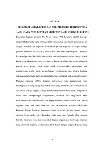 PENGARUH MODAL KERJA DAN VOLUME USAHA TERHADAP SISA HASIL USAHA PADA KOPERASI KREDIT SWASTI SARI KOTA KUPANG