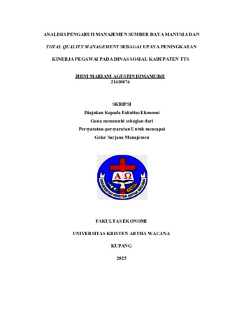 DIMAMUDJI, Jhini Mariani Agustin (2025) ANALISIS PENGARUH MANAJEMEN SUMBER DAYA MANUSIA DAN TOTAL QUALITY MANAGEMENT SEBAGAI UPAYA PENINGKATAN KINERJA PEGAWAI PADA DINAS SOSIAL KABUPATEN TTS. Undergraduate thesis, Artha Wacana Christian University.