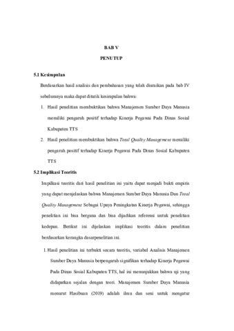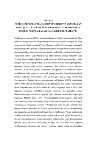 ANALISIS PENGARUH MANAJEMEN SUMBER DAYA MANUSIA DAN TOTAL QUALITY MANAGEMENT SEBAGAI UPAYA PENINGKATAN KINERJA PEGAWAI PADA DINAS SOSIAL KABUPATEN TTS