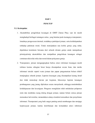 ANALISIS PERSPEKTIF JEMAAT TERHADAP AKUNTABILITAS DAN TRANSPARANSI PENGELOLAAN KEUANGAN GEREJA (Studi Pada GMIT Zaitun Pitay)