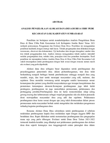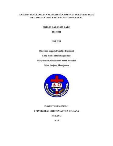 LADO, Adelia Larasati (2025) ANALISIS PENGELOLAAN ALOKASI DANA DESA DI DESA UBBU PEDE KECAMATAN LOLI KABUPATEN SUMBA BARAT. Undergraduate thesis, Artha Wacana Christian University.