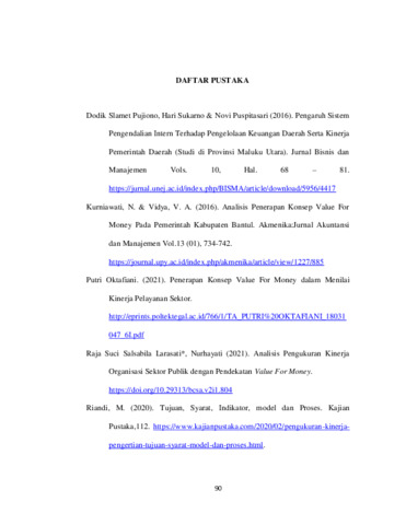TANG, Oktofianus (2025) PENERAPAN KONSEP VALUE FOR MONEY DALAM MENILAI KINERJA PELAYANAN SEKTOR PUBLIK PADA DINAS KESEHATAN PROVINSI NUSA TENGGARA TIMUR. Undergraduate thesis, Artha Wacana Christian University.